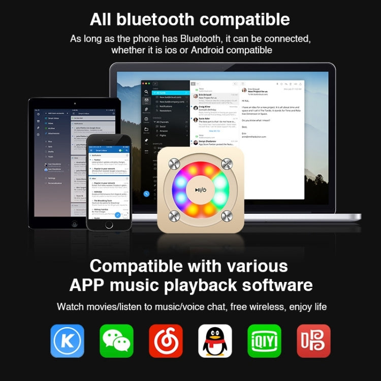 A9 Portable Bluetooth Stereo Speaker with Built-in MIC & Light, Support Hands-free Calls & TF Card & AUX IN, Bluetooth Distance: 10m