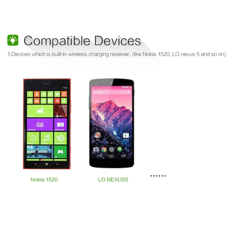 8. The charger has wide compatibility with smartphones. Both Qi-enabled Android and iPhone devices are available. Please note that iPhone devices or Android devices with no wireless charging receiver needs to equipped with a Qi-enabled case for wireless charging. The QI-enabled case should be ordered separately.