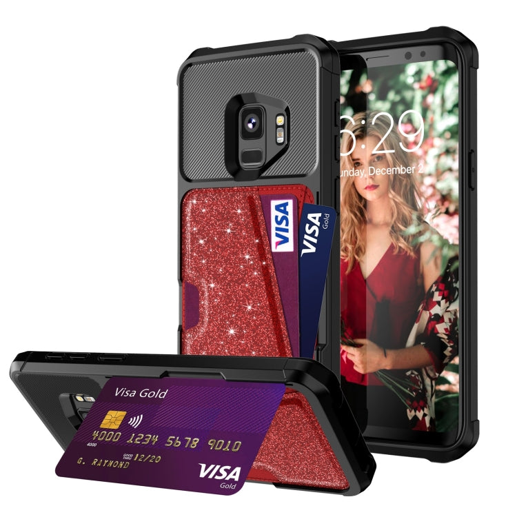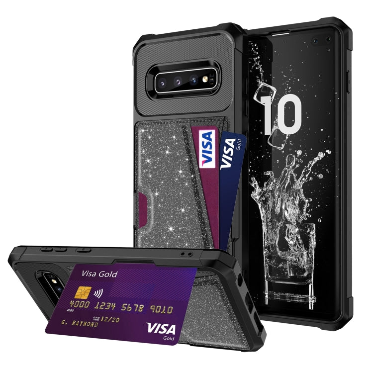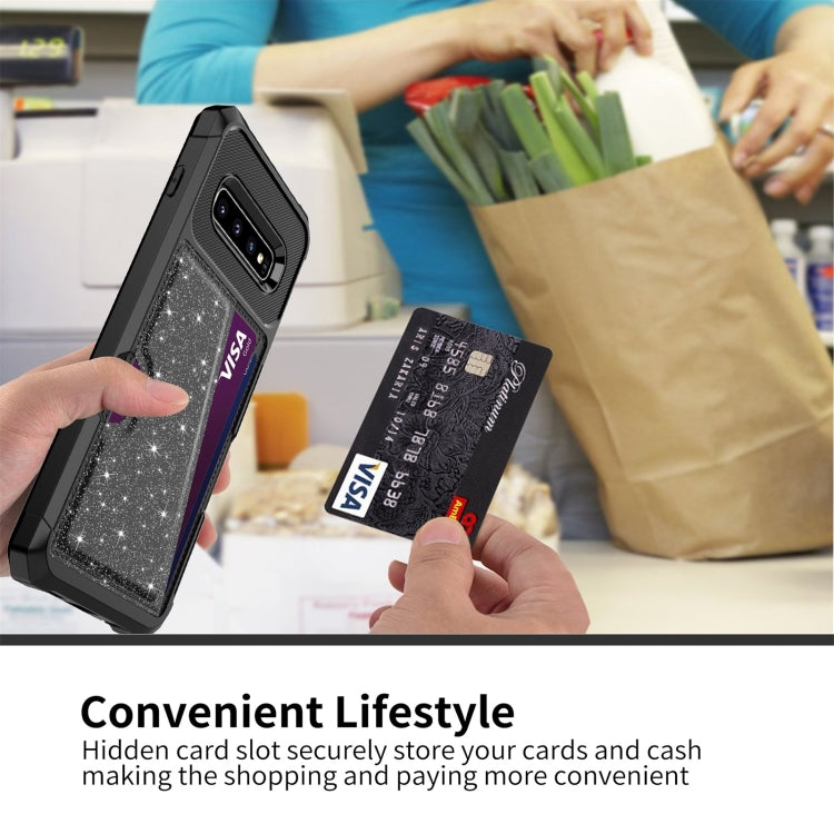 Glitter Magnetic Card Bag Phone Case, For Samsung Galaxy S10, For Samsung Galaxy S10+, For Samsung Galaxy S10e, For Samsung Galaxy S9, For Samsung Galaxy S9+, For Samsung Galaxy Note9