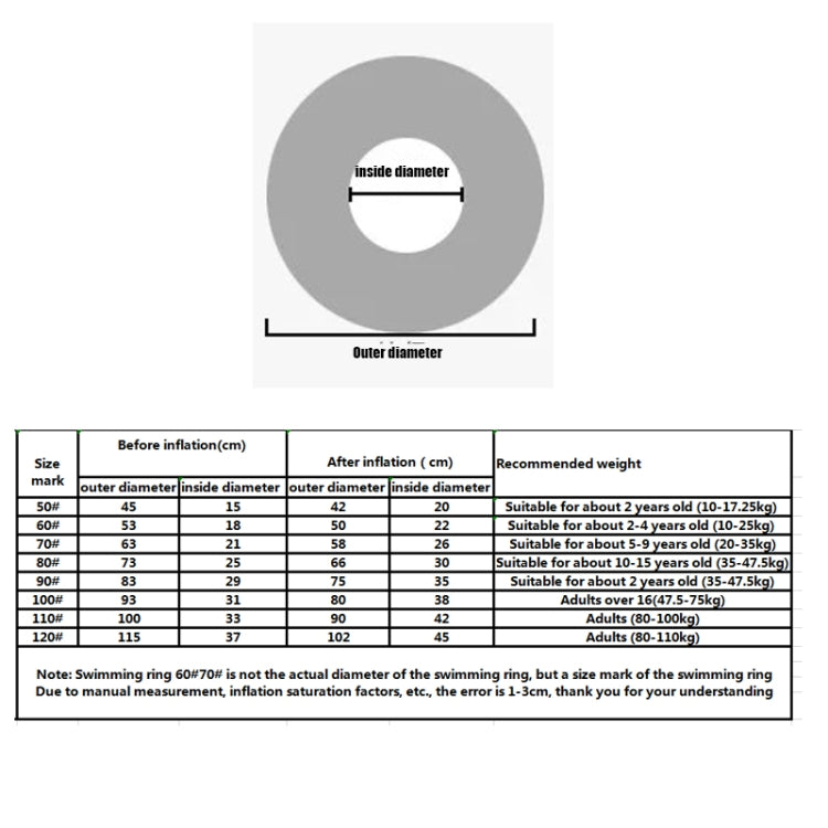 7. Outside diameter after inflation: 60cm, 70cm, 80cm, 90cm