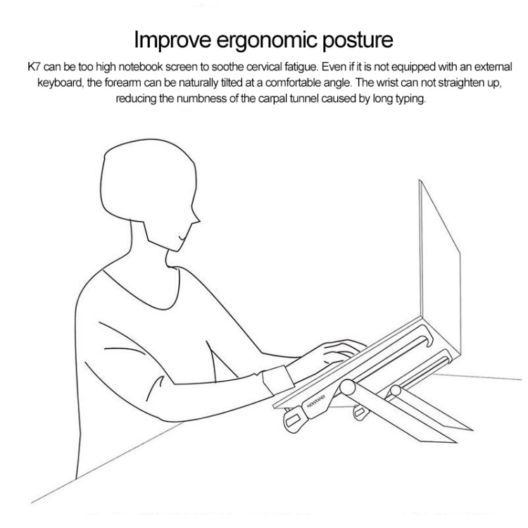 2. Improve ergonomic posture and raise the height of notebook screen moderately, alleviating cervical fatigue and carpal numbness caused by long-term use of notebook